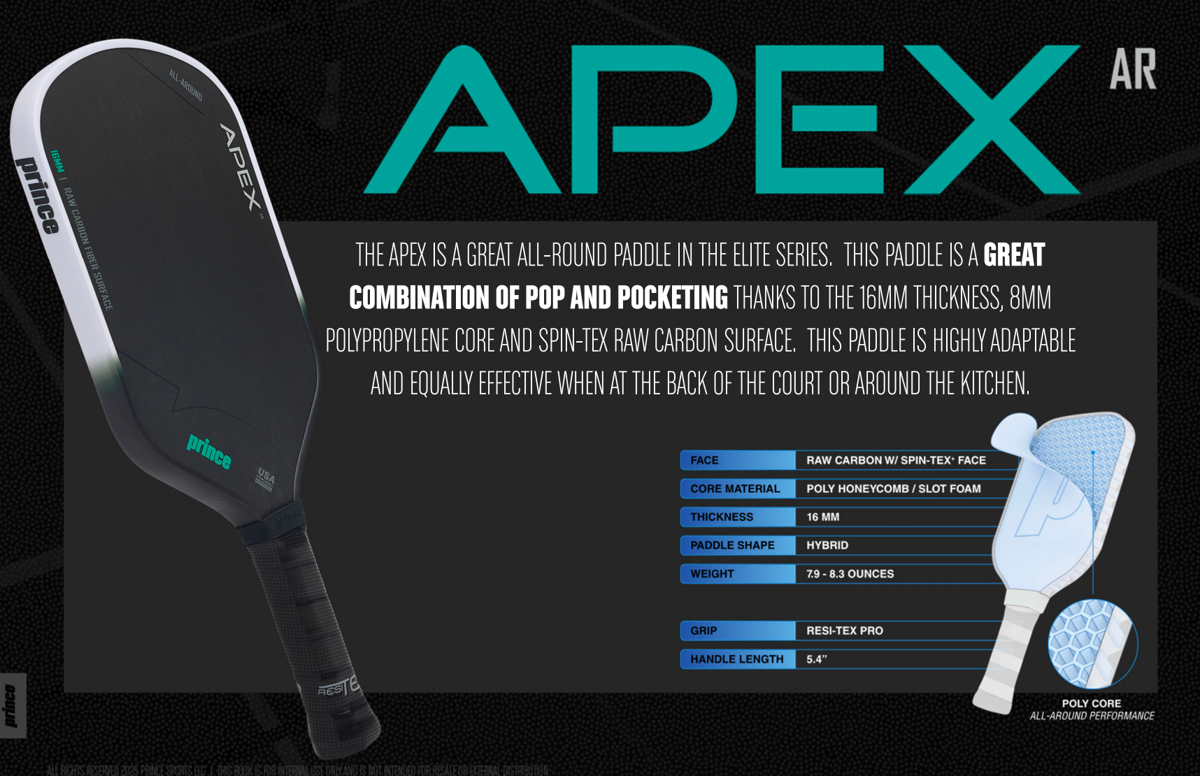 Apex 匹克球拍是 Elite 系列中表現出色的全方位球拍。