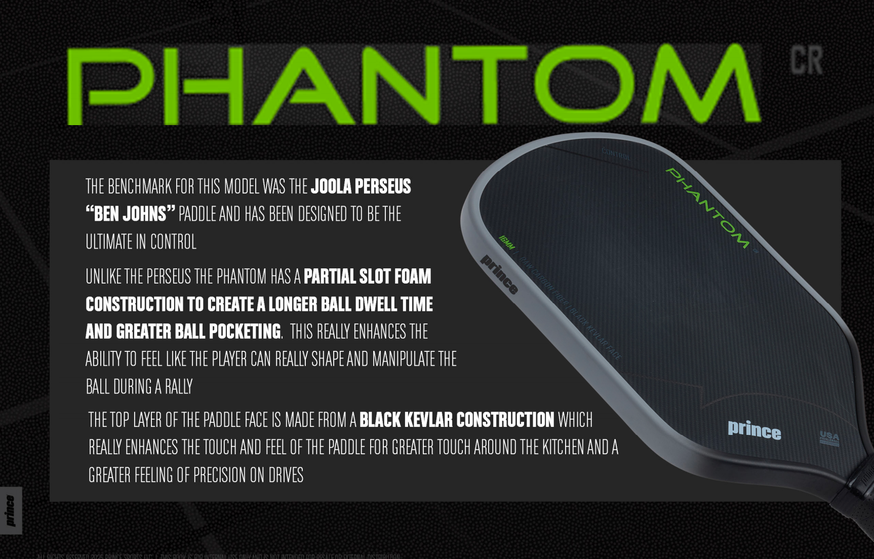 全新 Phantom 匹克球拍,是操控性與精準度的極致之作。